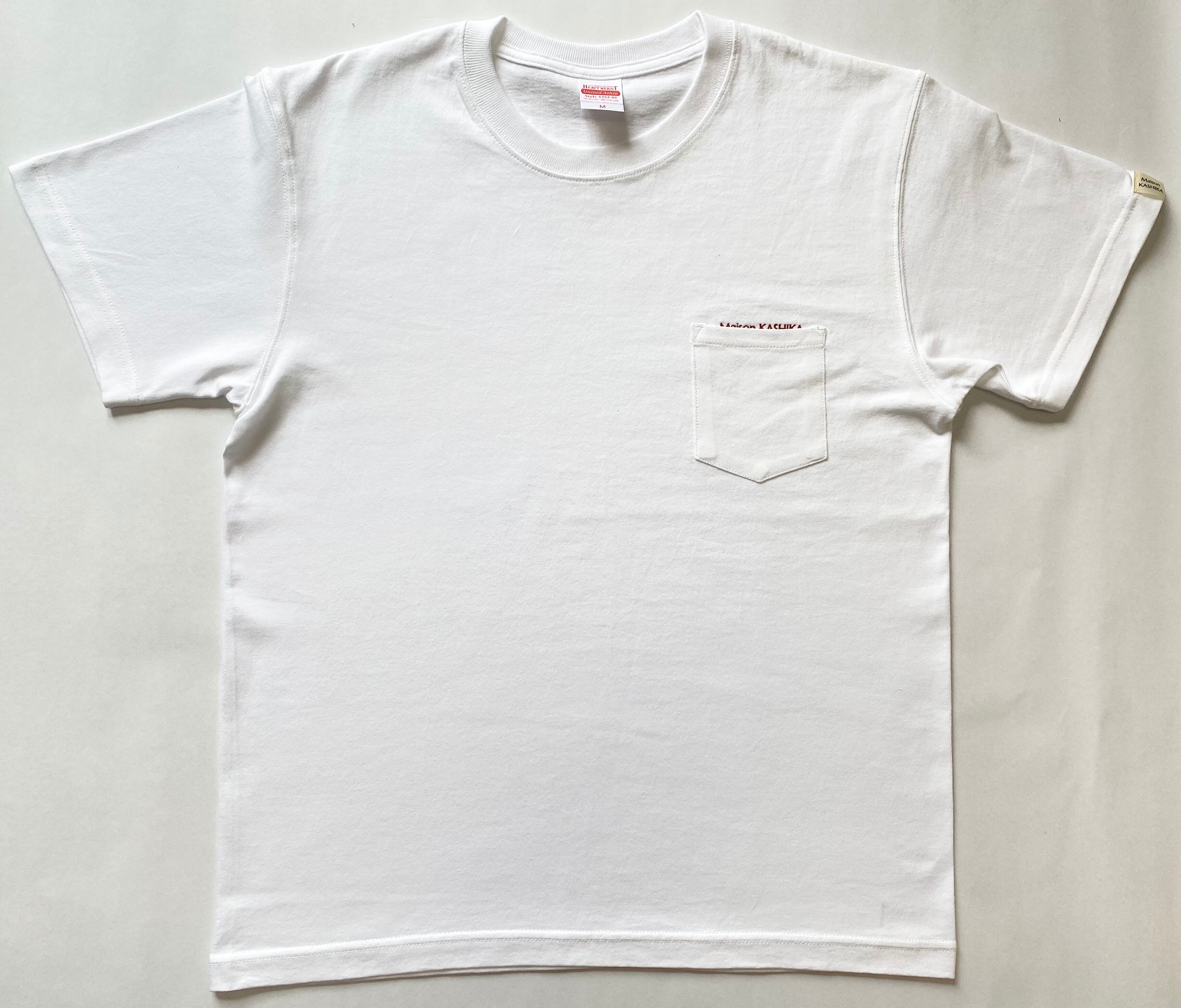ロゴ刺繡がポケットから半分覗いているさりげないデザインのTシャツ。